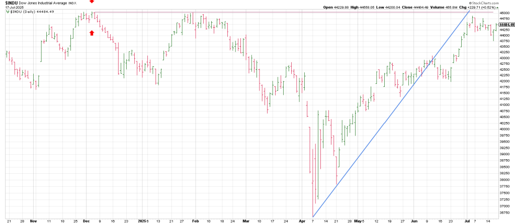 The DJIA struck a high of 44, 885 on July 3, 2025.