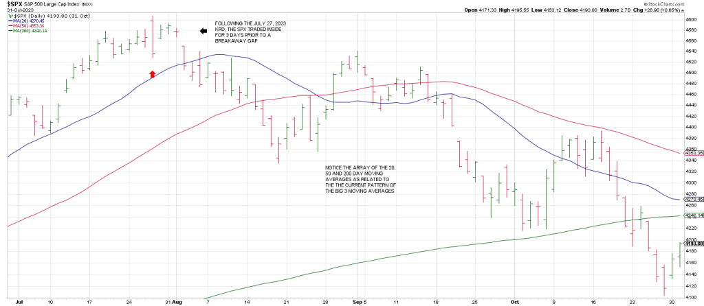 The SPX traded inside for 3 days before a Breakaway Gap opened the down door.