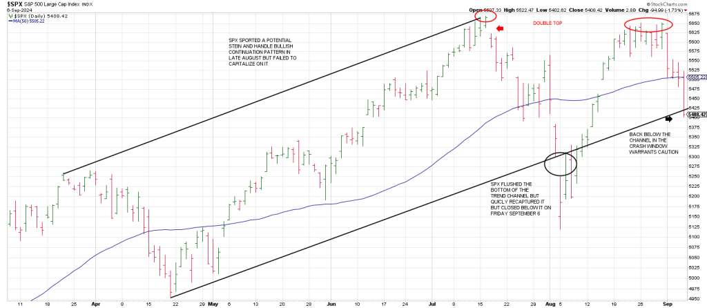 In fact right off the high day (which was virtually a high-tick close), the SPX had a Breakaway Gap to the downside. That’s never a good sign—especially when you get downside follow thru. We did. The SPX satisfied our expectation for a Flash Crash from late July to early August.