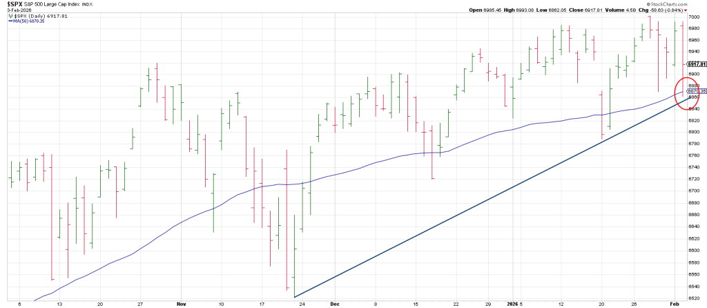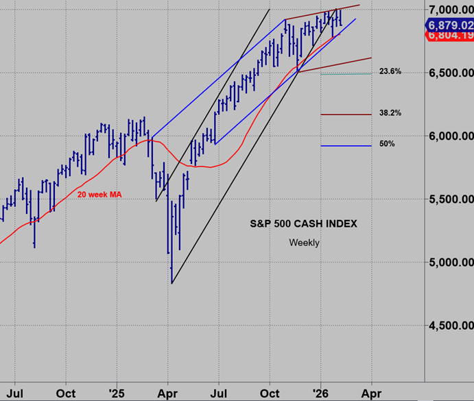 Since the April 2025 low the index has tested its 20 week moving average twice—in mid-November and again in mid-January.