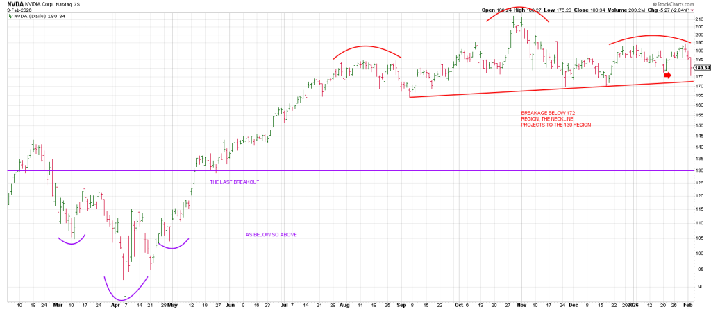 For its part, the Homecoming Queen, NVDA, looks more like Carrie having broken its 50 day line with authority on Tuesday and in the process snapping a Bottoms Line from mid-December.
