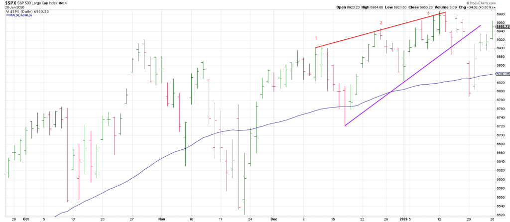 The SPX eked out a new record high in early January but then plunged below its 50 day line for the third time since the October high.