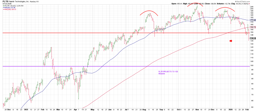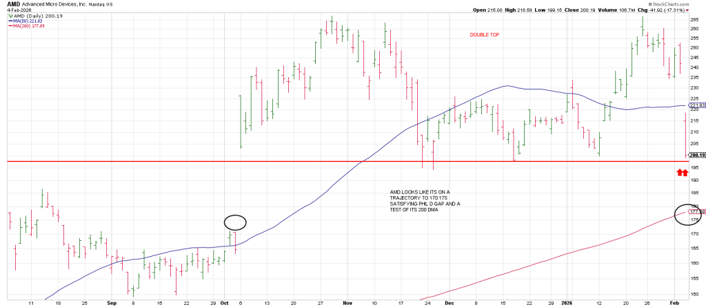 In addition to software names that look like they are trying to put in a bottom yesterday, (NOW, TEAM and CRM to mention a few) we have seen crashes in big name stocks like AMD and PLTR…both diving after earnings.
