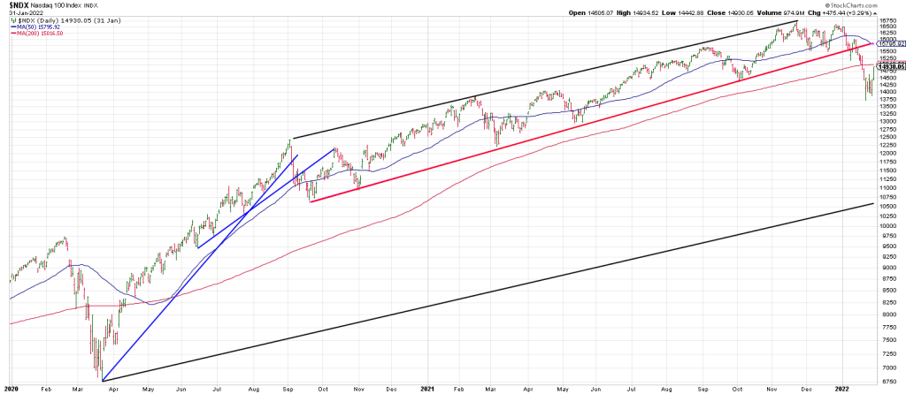 Below is a daily NDX from January 2020 thru January 2022, just after a major top was struck on November 22, 2021.