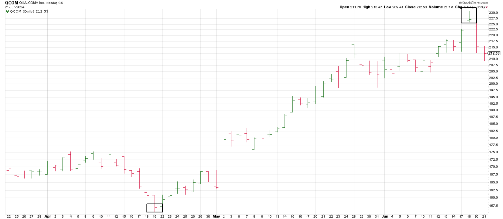 We flagged the price square-out in QCOM at 230 on the Hit and Run Private Twitter Feed on Wednesday.