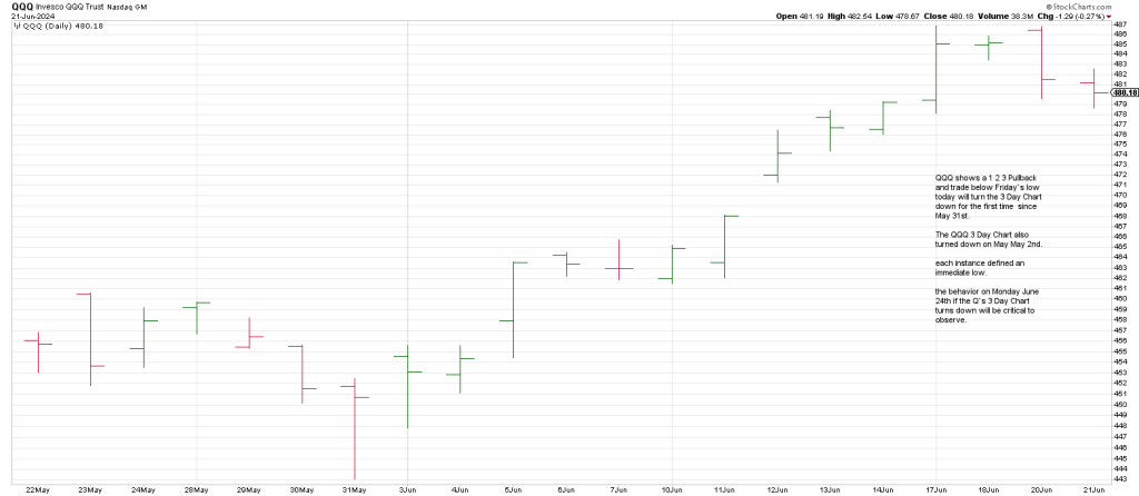 Today we want to see if the QQQ 3 Day Chart will turn down.