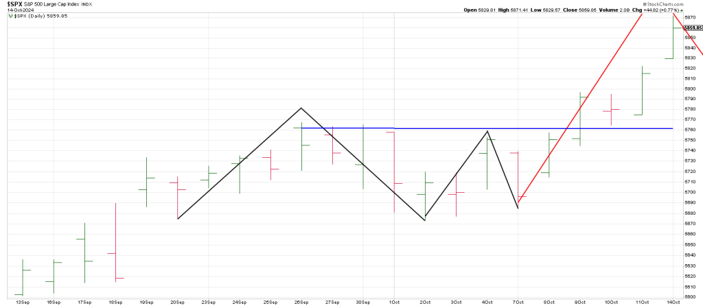 Breakage below the peaks of the ‘M’ around 5765 is a warning shot over the bow.