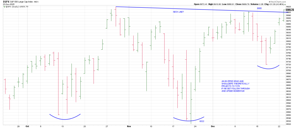 If the above chart is an inverse Head and Shoulders theoretically the projection is to 7278 region— if we get upside follow through and momentum.