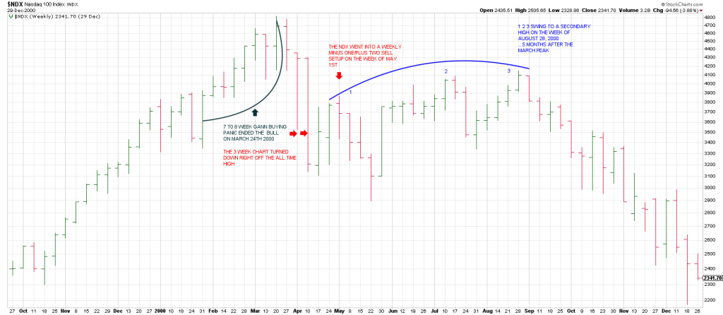 Following the first leg down the NDX (like the SPX) carved out a 1 2 3 Swing to a Test of the all-time high in late August 2000.