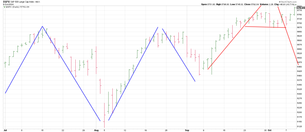 The double tops in July/August 2024 show a larger intervening plunge than that from 2021, followed by a nominal new high and then a last ditch “cherry on top” breakout…yesterday.