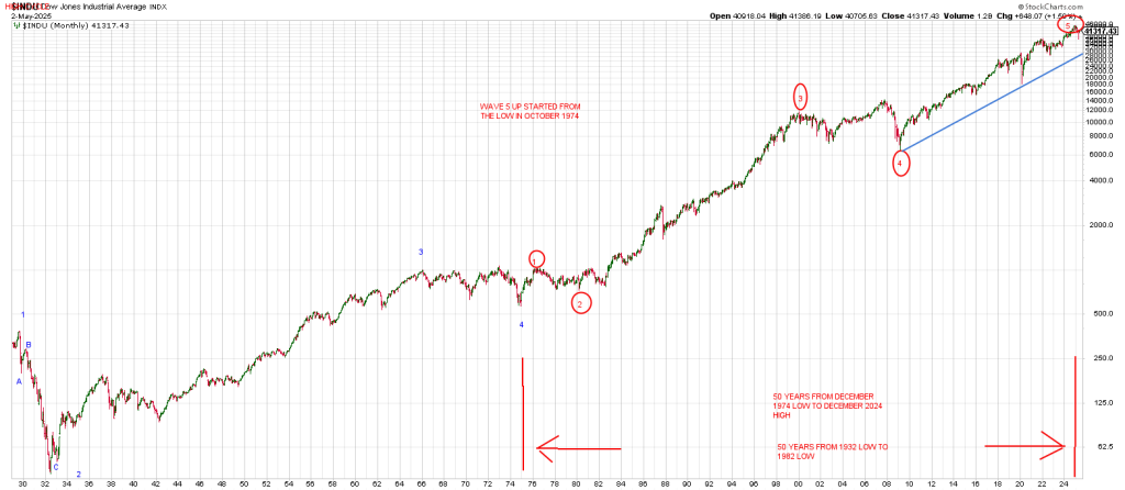 However, somewhere from the 1974 low the DJIA will complete 5 major waves up for a Super Cycle Wave 3 top,