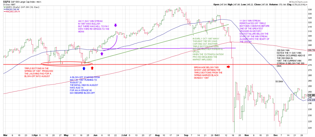 When the SPX broke below where the 11 day win streak started, the crash of ’87 was in full throttle.