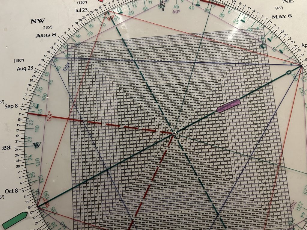 583/584 (5830-40) is square the July 16th peak and straight across and opposite October 15th producing a possible Time/Price square-out.