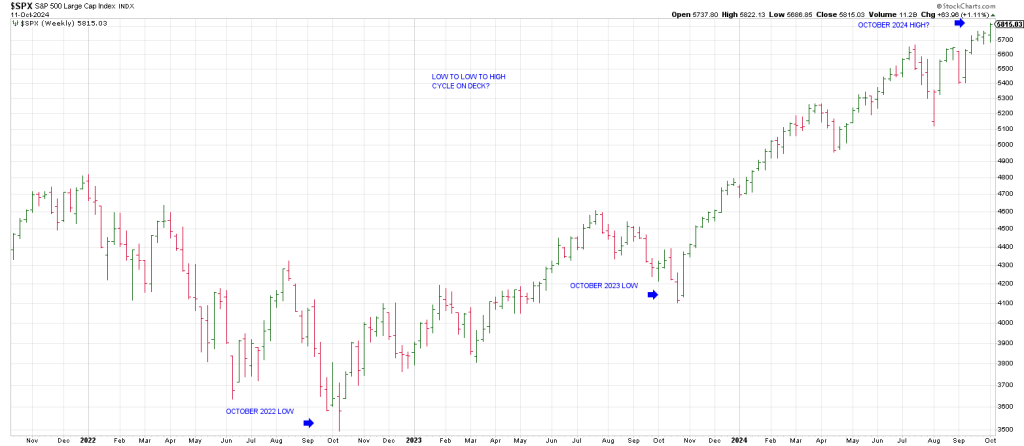 We have a 1 year ow from Oct 2022 to Oct 2023 and are 1 year from the Oct 2023 low.