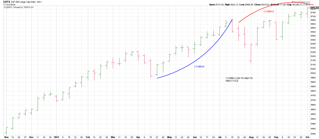 It is 12 weeks from the April 2024 low to the July 2024 high.