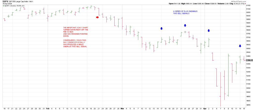 While the first such signal did not produce much of a reversal, the second -1/+2 on March 25th produced a waterfall decline.