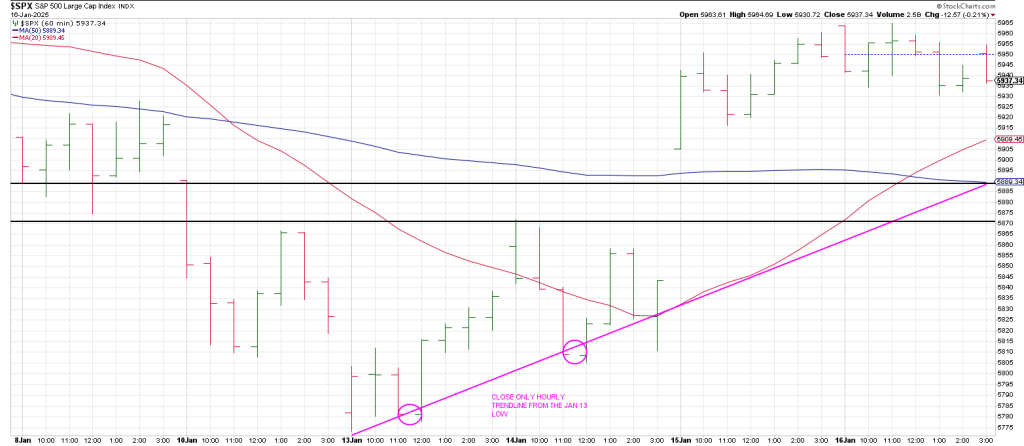 Checking the SPX hourlies shows the market has essentially gone sideways since Wednesday outsized gap to a first hour high.
