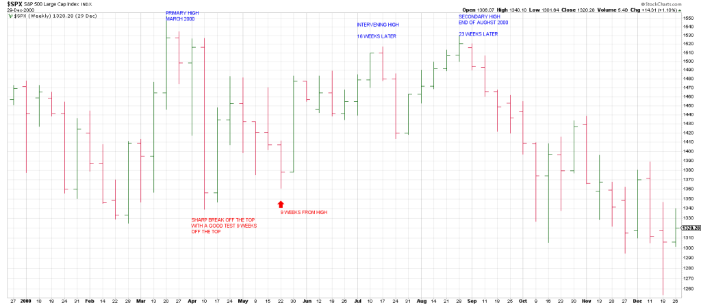 Let’s take a look at two other major tops in this century and their pattern of Primary and Secondary Highs.