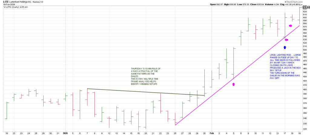 Here’s a daily LITE that shows Thursday’s 10 min Rule of 4 breakout was a fractal of the same pattern on the dailies.