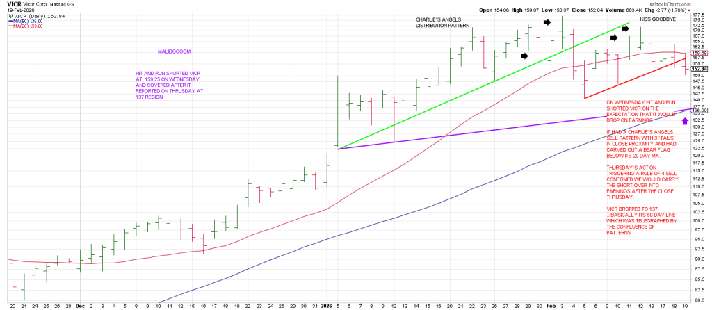 VICR dropped to 137 after reporting, basically its 50 day line which was telegraphed by the confluence of patterns putting the pieces together.