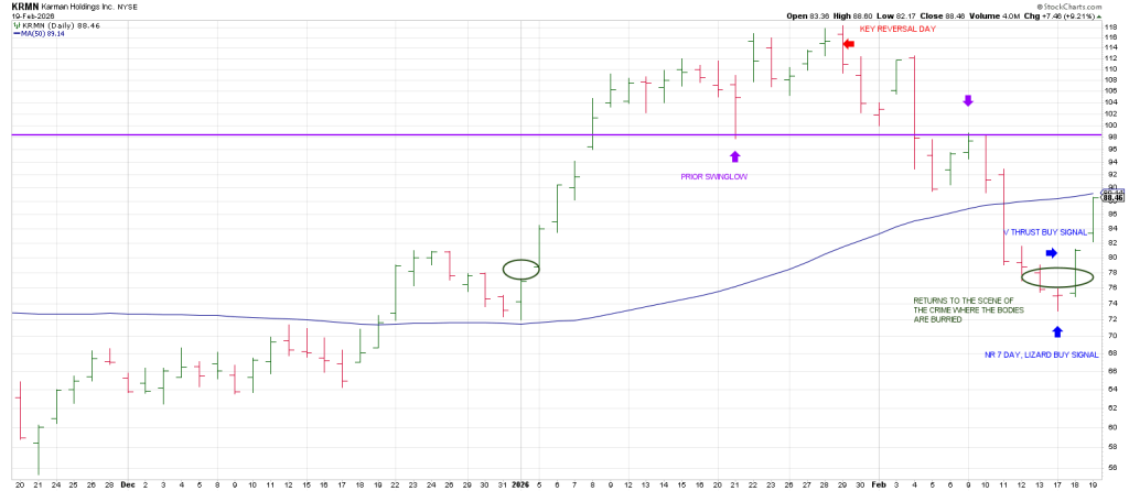 KRMN left a Key Reversal Day in late January leading to an authoritative breakoff its prior swing low perpetuating a return to the secen of the crime where the bodies are buried.