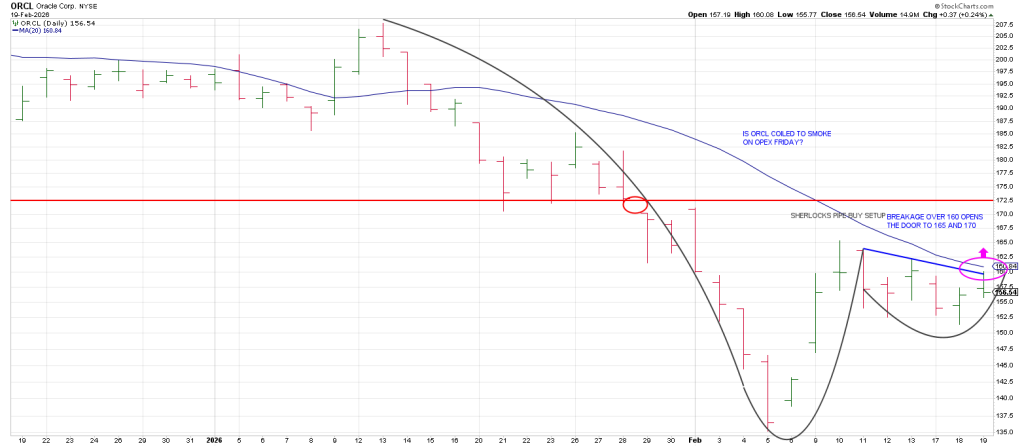 If ORCL clears 160 today, it could run to 165 on an OpEx Pinball setup.