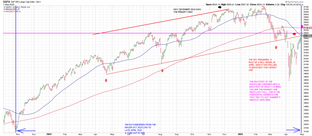 Notice that Thursday the SPX Pinocchio’d the red Ghost Line to kiss the horizontal magenta line.