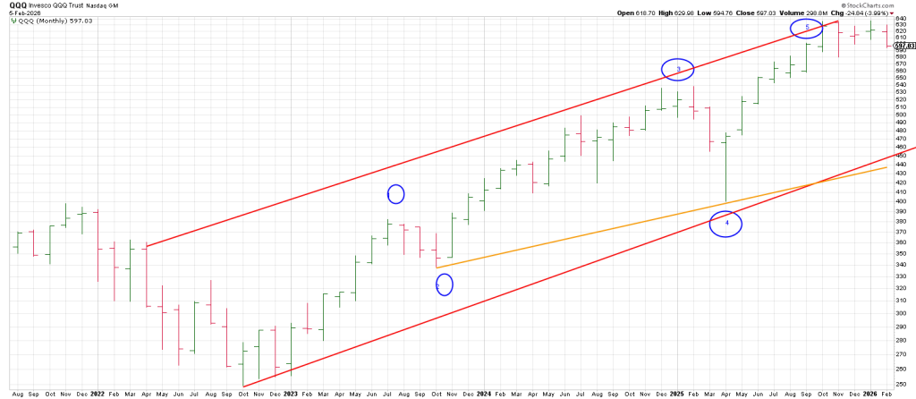 Checking a monthly QQQ from the important 2022 LOW shows 5 conspicuous waves up.