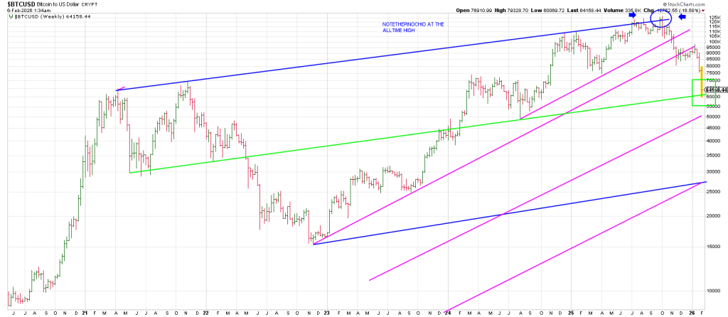 We showed a chart with bitcoins Megaphone Top again in yesterday’s piece.
