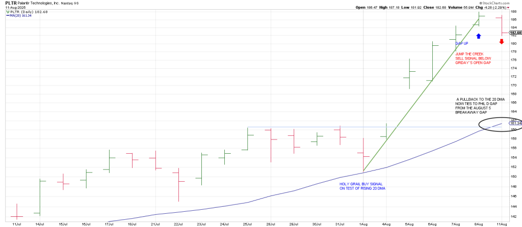 PLTR exemplifies reversal in momentum Monday. With a Jump the Creek sell signal.