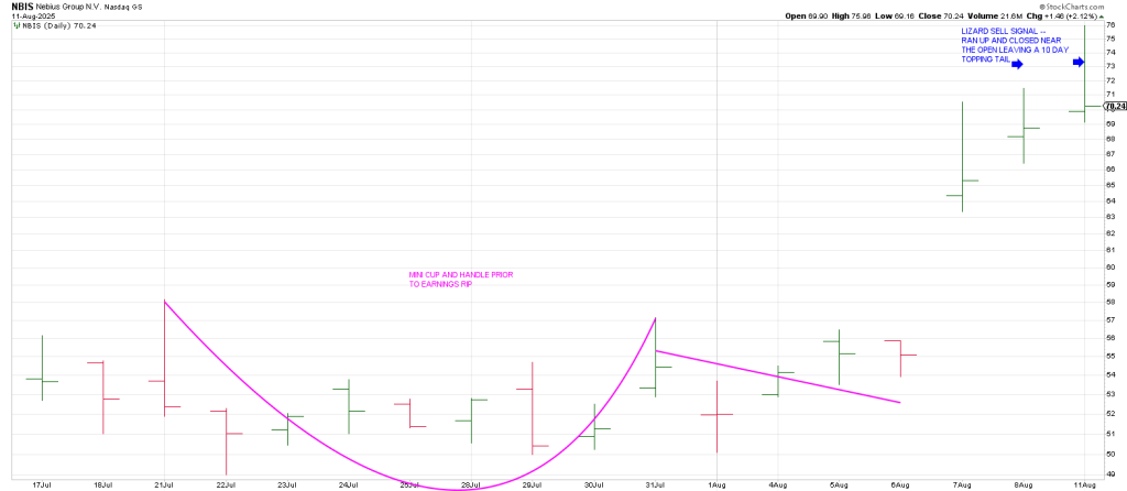 NBIS is another leader that left a 10 day Topping Tail, a Lizard sell signal