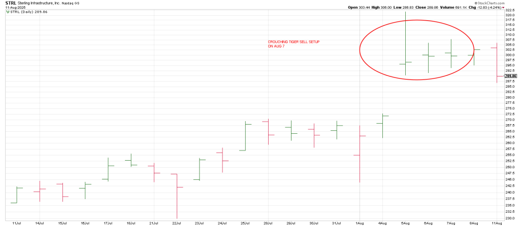 STRL followed thru from a Hidden Dragon (double up inside) sell setup from Thursday August 7.
