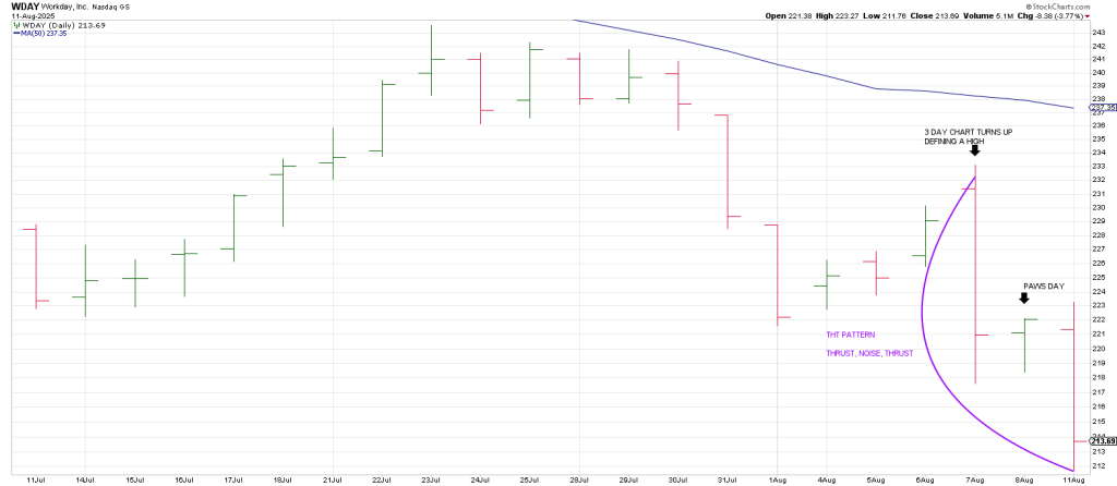 WDAY, a Hit and Run an audible short on the Hit and Run Private Twitter Feed on Monday, typifies the SaaS/cloud sector that is getting pummeled.