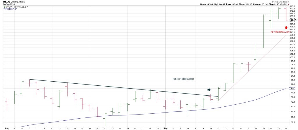 OKLO broke out of a Cup and Handle early this month and Hit and Run took it on a swing.