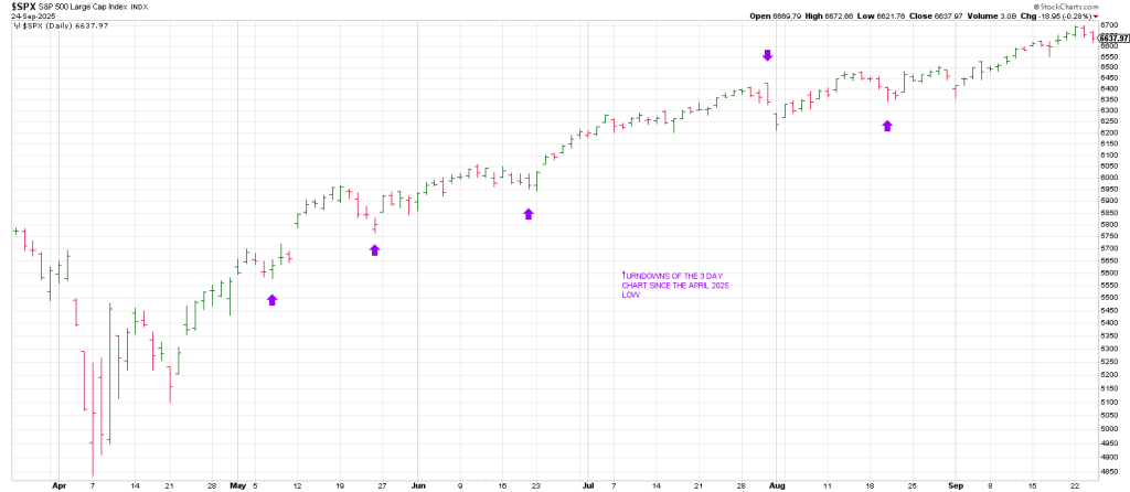 Since the April 7, 2025 low, the SPX has turned its 3 Day Chart down only 5 times.