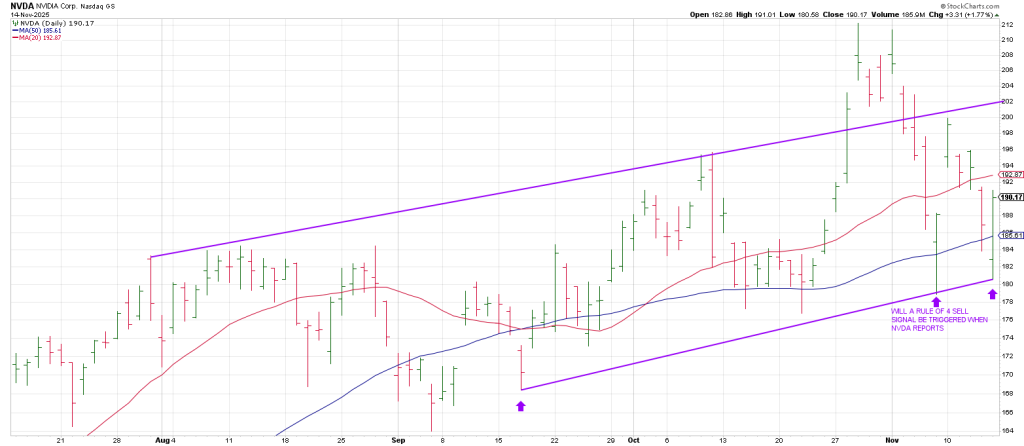 Friday NVDA rebounded of the bottom of a trend channel, but it has its work cut out for it.