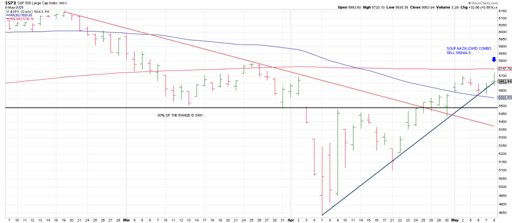 2) The SPX also left a Lizard sell signal. This is a new 10 day high Topping Tail, a new 10 day high with the open and close near the bottom of the day’s range.
