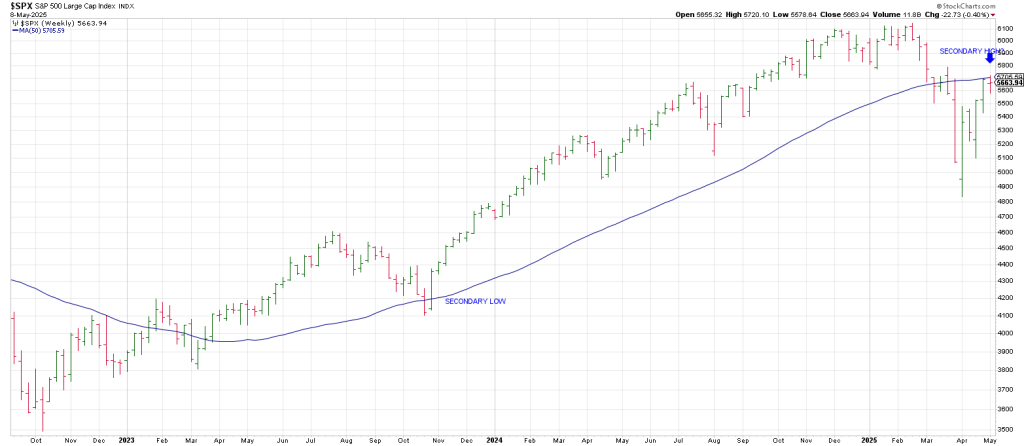 Interestingly it was a pullback to the SPX 50 week moving average in October 2023 that defined a Secondary Low and produced a 2000 point run for the roses.