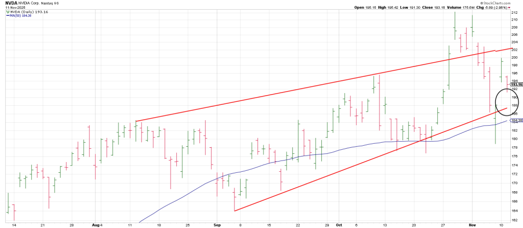 First notice from the 3rd lower high on October 24, a persistent down leg kicked off snapping the 50 DMA.