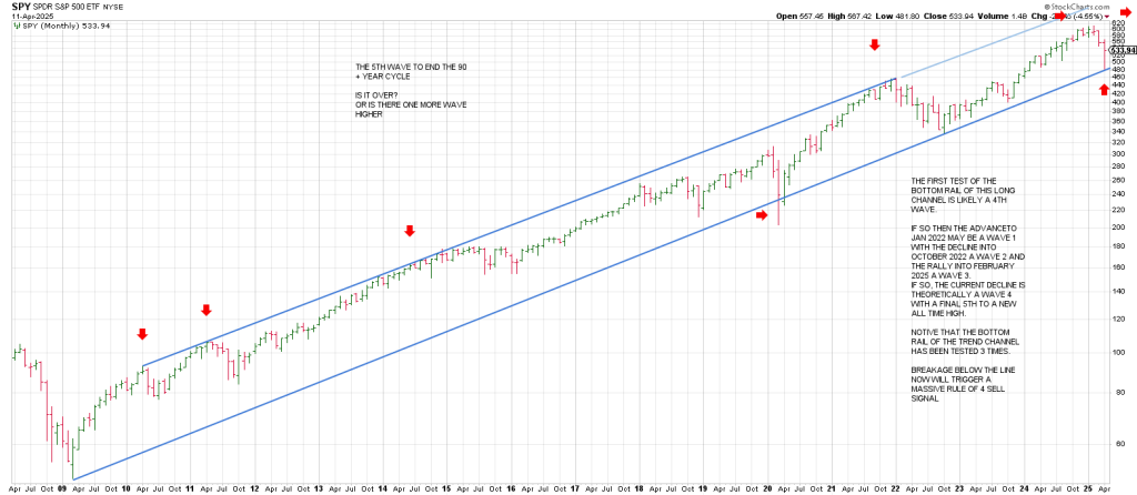 To recap, the first test of the bottom rail of this long channel is likely a 4th Wave because the Long Wave preceding it is consistent with a powerful Wave 3.