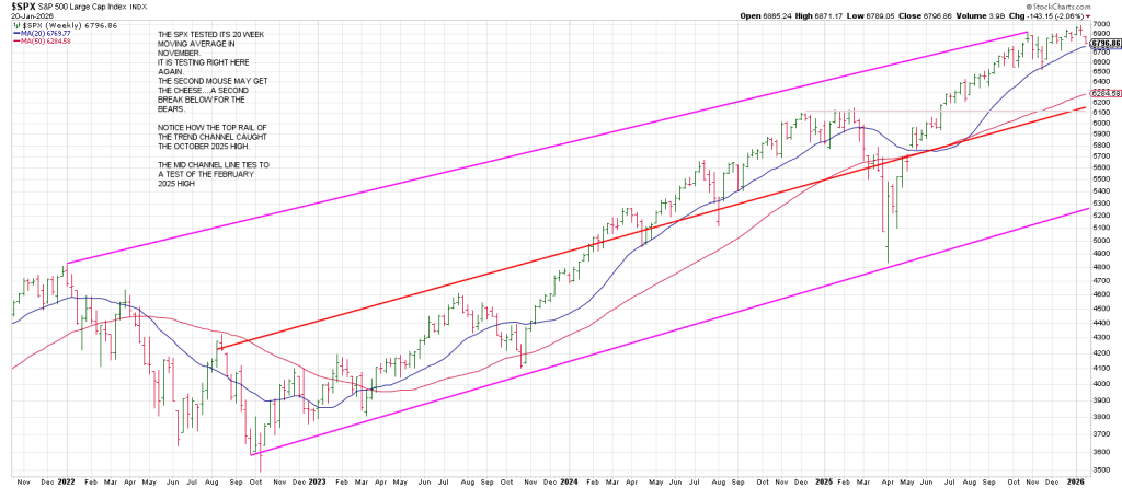 Below is a weekly SPX from the 2022 peak with a parallel channel that nailed the October 2025 high, underpinning the idea that last weeks high was a Secondary High.