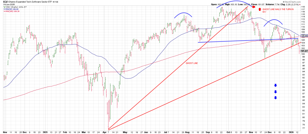 It is a situation that has been underway for 7 weeks that became very pronounced on the first trading day of 2026 when IGV, the software ETF, smashed through its 200 dma on a trajectory to test its November 21st 52 week lows.