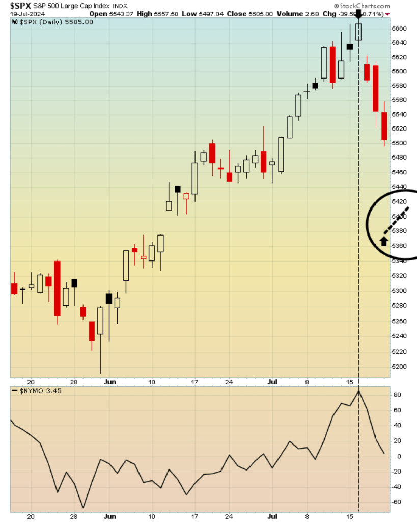 First, the initial thrust of this decline has yhet to be fully measured. However, from the first three days since the July 16 , 2024 peai, we can observe that this thrust is at least as intense as those that perpetuated the July 1990 and July 2007 crashes.