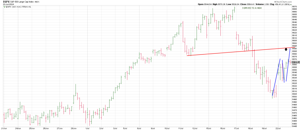 An hourly SPX shows 5580 ties to the break down pivot on Thursday and the 50 hour MA.