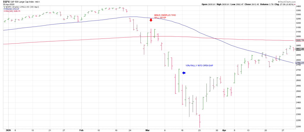 As the chart above showcases we saw a nearly identical session on Friday March 13, 2020—complete with similar breadth statistics—just before the SPX fell another 20% over the following ten days.