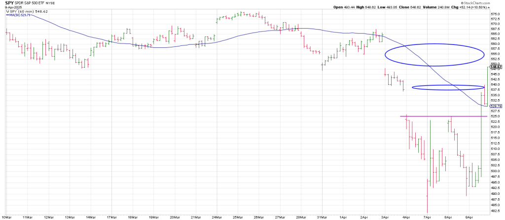 So as the President backed away from his pledge to keep tariffs on all foreign nations in place indefinitely—retreating under pressure from the faltering bond market—equity markets roared back with a vengeance.