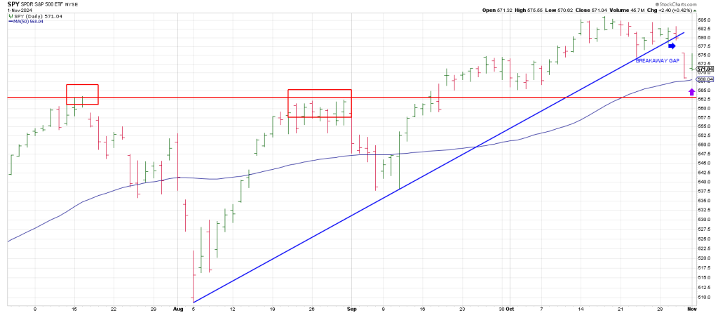 That is why I tweeted on the Hit and Run Private Twitter/X Feed last Tuesday that breakage below 579/580 on Thursday, Oct 31) would likely see a dive to 570 that same day.