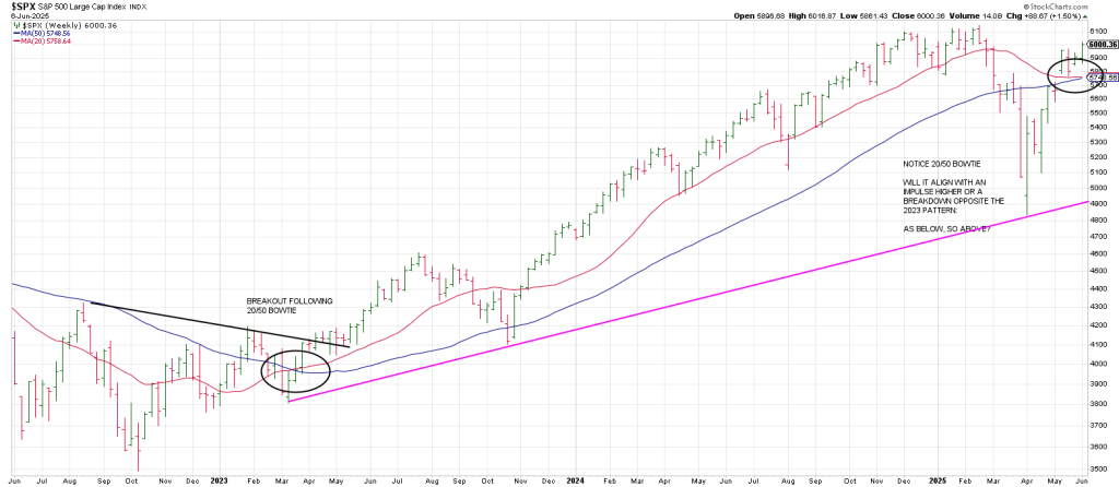 Incidentally, the last time the SPX had a weekly 20/50 Bowtie was in March 2023. The was the breakout following the October 2022 low.