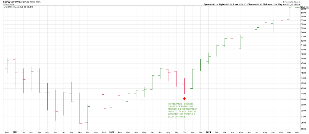 The NDX 3 Month Chart turndown in October 1998 looks virtually identical to the turndown in the 3 Month Chart in October 2023.