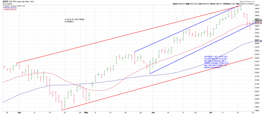 “The SPX broke the key 5220 level on the Friday  weekly closing basis last week but gaped up on Monday reclaiming its 20 day moving average.
